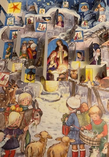 Today it is 25th December. Finally it's Christmas. Have you seen all the pictures that has been hidden behind the flap in the adventscalendar? Which picture is behind the flap of 24th and of 25th day?
